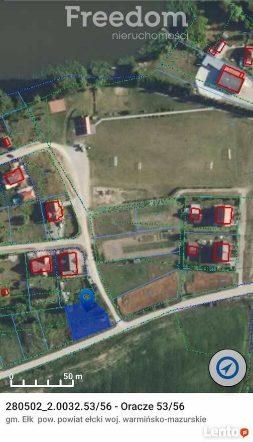 Na sprzedaż niewielka działka rolno-budowlana o pow. 715 m² (nrewid. 53/56), położona we wsi Wityny, obręb Oracze, zaledwie 3 km